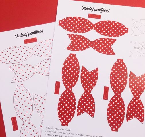 Snami brezplačno datoteko za pentljico, natisni, izreži in prilepi na Valentinovo darilce.