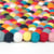Okrogla preproga premera 100 cm, narejena iz kroglic iz filca (22 mm).