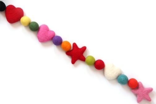 Srčki in kroglice iz filca so 100 % naravne volne novozelandskih ovc, so popolnoma okolju prijazne in 100 % razgradljivi.