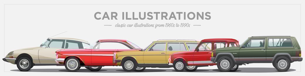Moje ilustracije avtomobilov so unikatne, narisane vektorsko z uporabo računalniških programov, detajli in barve zvesto sledijo dejanskim modelom.