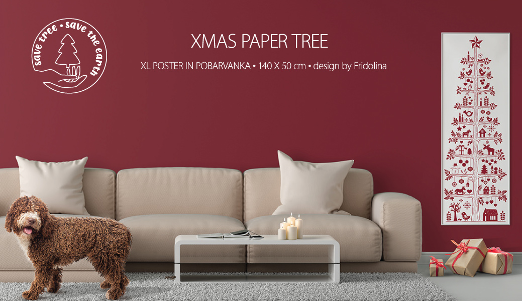 To čudovito božično drevo v skandinavskem stilu bo popestrilo praznični ambient, hkrati pa bo nadomestilo pravo smrečico. Tako bo prava smrečica lahko še naprej rastla v gozdu in skrbela za naš čisti zrak, tebi pa ne bo treba pometati ali sesati iglic. Božiček ali dedek Mraz bo pod to smrečico prav tako lahko postavil darilca. Poster lahko shraniš v škatlico in ponovno uporabiš naslednje leto.