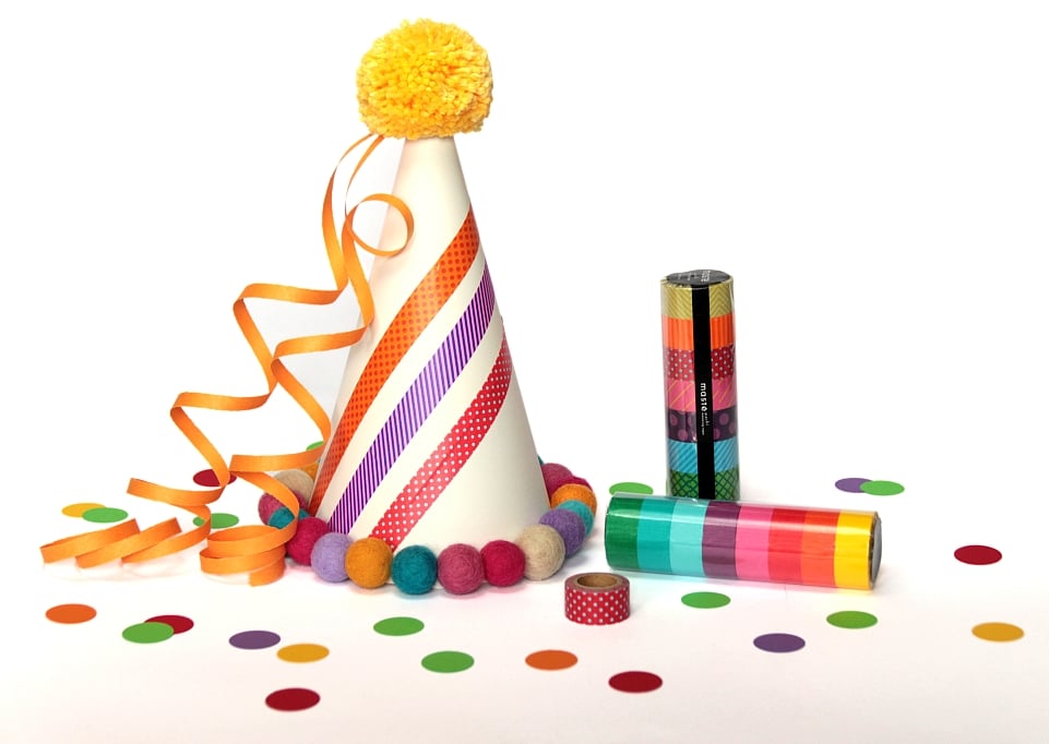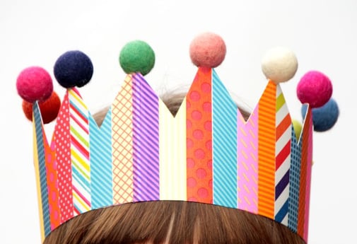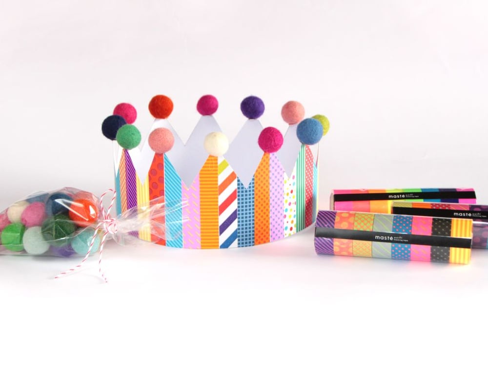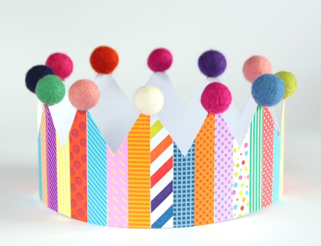 Krona za princesko iz washi trakov in kroglicami iz filca - inspiracija za priprave na pust.