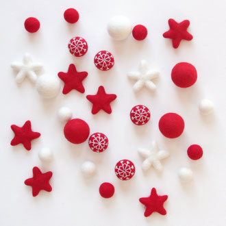 vsestranskost te navdušita do te mere, da bi z njimi takoj pričel ustvarjati. Kroglice iz filca so izdelane iz prave ovčje volne in dajejo občutek prestižnosti. Kroglice, zvezdice in srčki iz