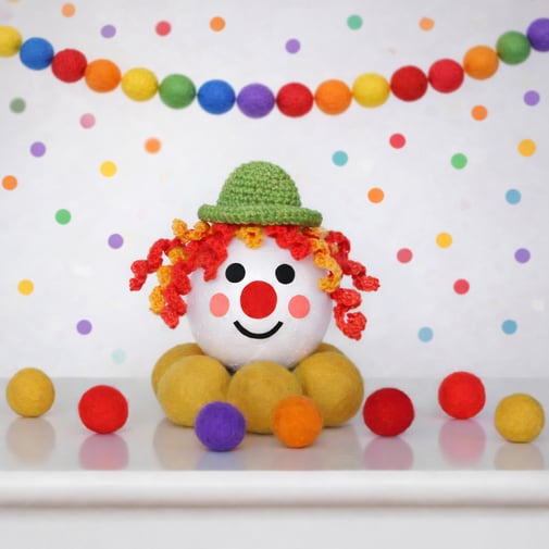 Za pustno dekoracijo so kroglice iz filca kot nalašč za izdelavo barvite girlande ali klovna. Na vrvice lahko nanizamo barvne kroglice in jo obesimo na primerna mesta. Stiroporno kroglico uporabimo za glavo, za ovratnik, ki je hkrati tudi podstavek za glavo, pa med seboj povežemo večje kroglice iz filca. Klobuček in laske izdelamo lahko tudi iz papirja ali drugih materialov, če nimamo pri roki kvačke in volne.