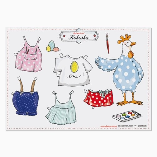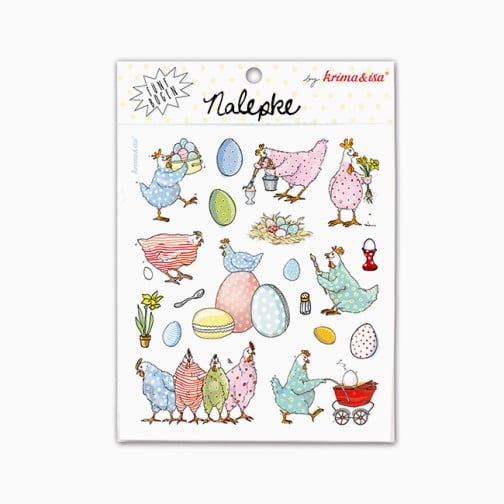 Na pirhe ali voščilnice lahko prilepiš tudi nalepke. Otroci pa se lahko poigrajo s prikupno kokoško in jo oblečejo.