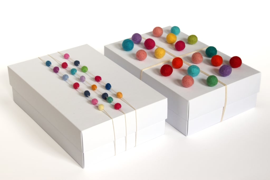 Na večjih ŠKATLAH delujejo kroglice iz filca še posebaj impresivno.